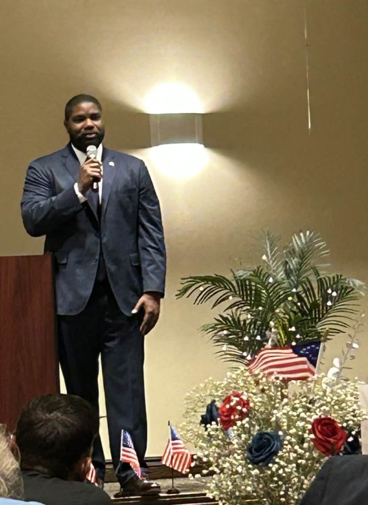 Arriving straight from Washington D.C. where Congressman Byron Donalds and his patriotic colleagues had just sent back, what Donalds referred to as a garbage bill, to the Senate the bill that would defund ICE and Border Patrol, the Congressman opened his approximately 45-minute speech with praising words for President Trump when he said, “We have witnessed in Washington DC is a couple of things. We have seen tremendous leadership and focus and energy and drive from the Commander-in-Chief Donald J. Trump.”